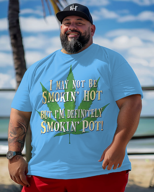 DEFINITELY SMOKIN‘ POT Bedrucktes Kurzarm-T-Shirt für Herren in Übergröße