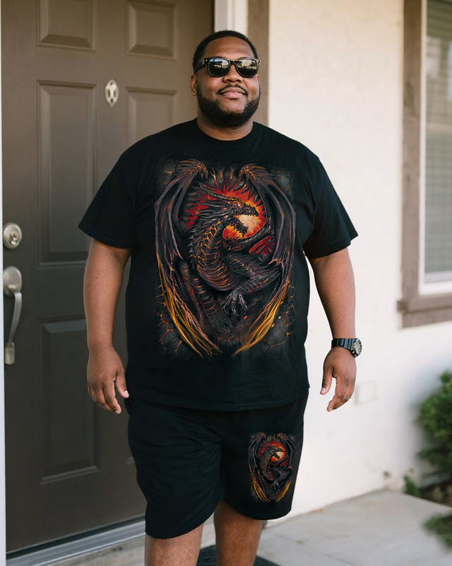 DRAGON FURNACE Men's Plus Size T-Shirt & Shorts Set