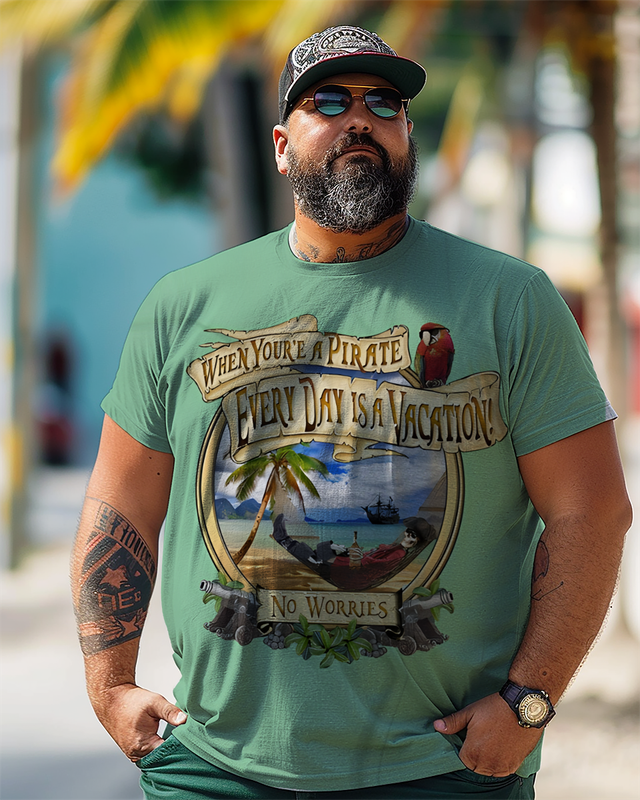EVERYDAY IS VACATION Bedrucktes Kurzarm-T-Shirt für Herren in Übergröße