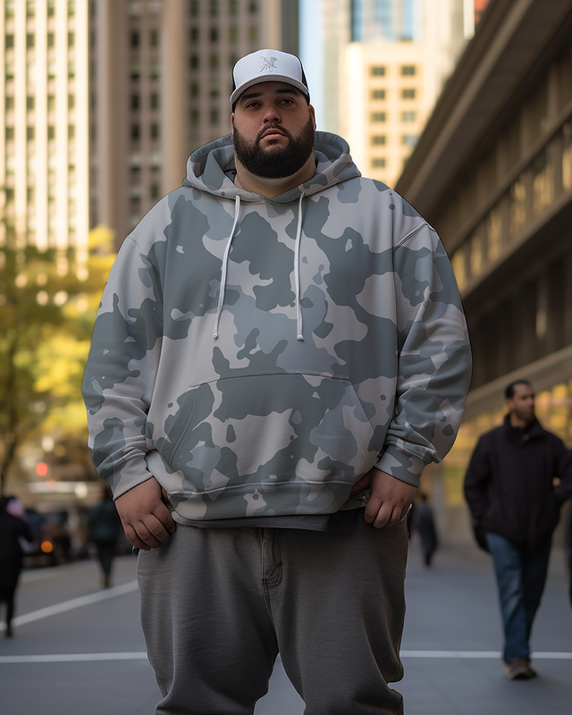 Grauer Camouflage-Kapuzenpullover und Hose für Herren in Übergröße