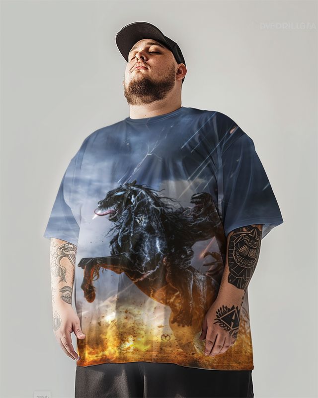 Kurzärmliges T-Shirt mit Totenkopf-Print für Herren in Übergröße