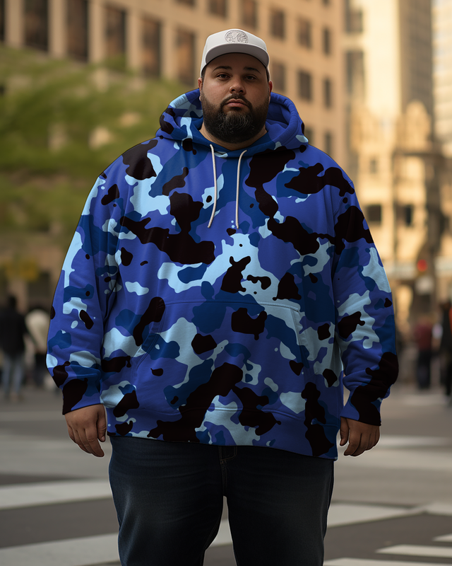 Stilvoller, lockerer Kapuzenpullover und Hose mit Camouflage-Muster in Übergröße für Herren