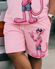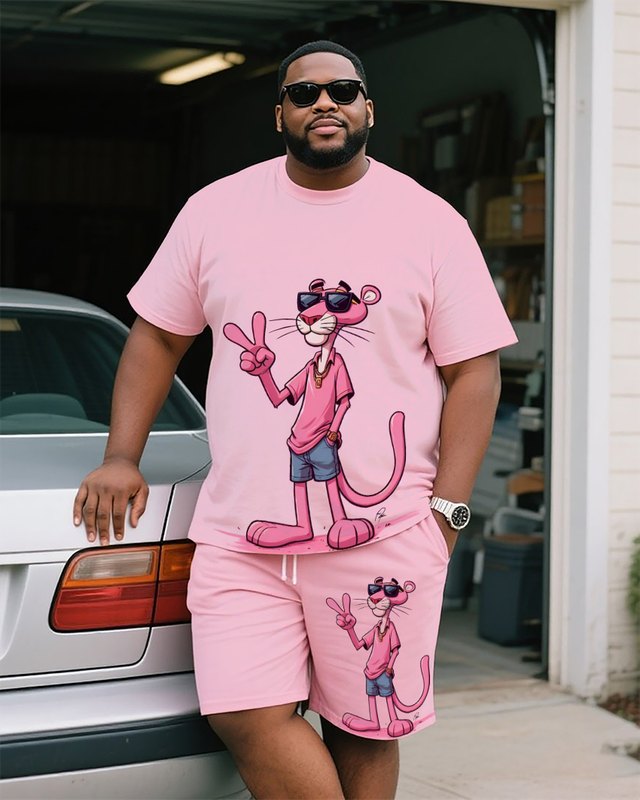 Pink Panther Men's Plus Size T-Shirt & Shorts Suit