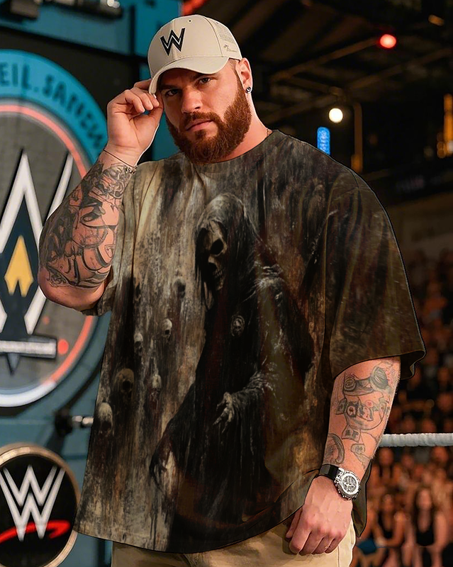 T-Shirt mit Totenköpfen für Herren, Übergröße, kurzärmelig