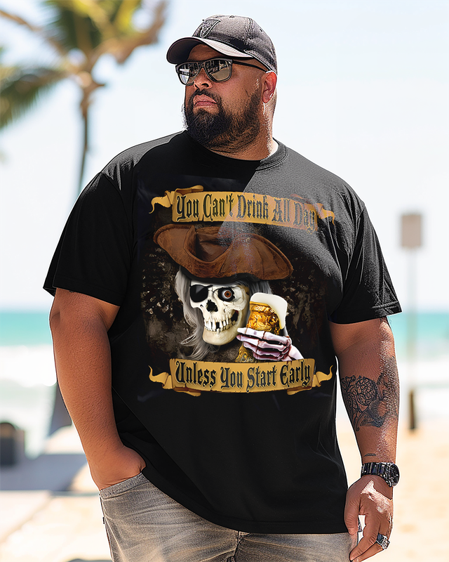 YOU START EARLY Bedrucktes Kurzarm-T-Shirt für Herren in Übergröße