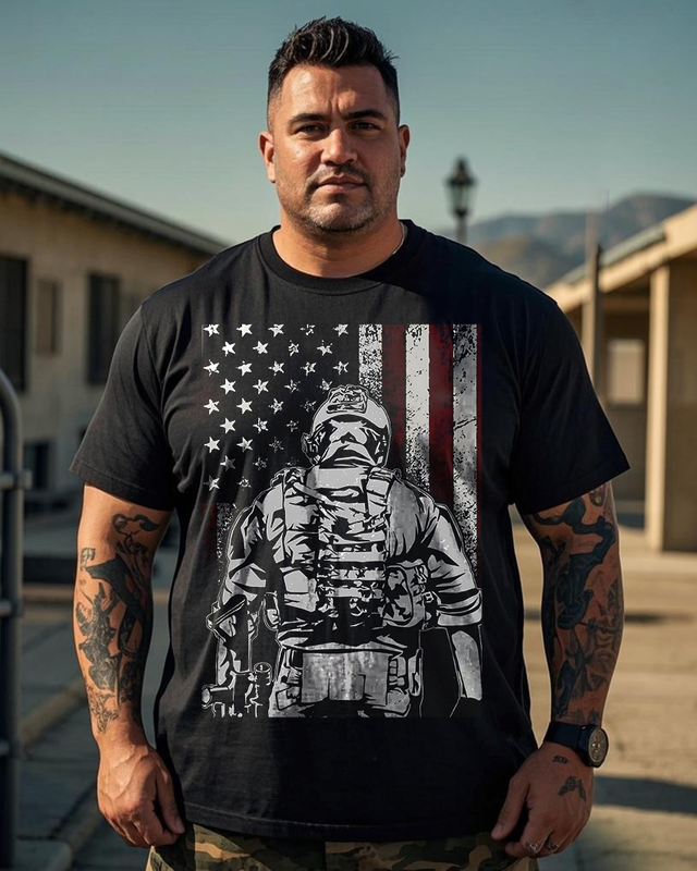 American Soldier Silhouette Men's Plus Size Short Sleeve T-Shirt