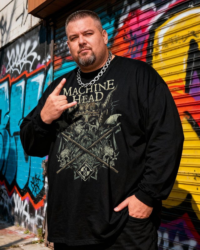 MACHINE HEAD Men's Big & Tall Long Sleeve Cotton T-Shirt