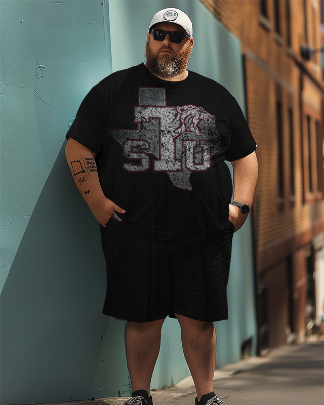 Ensemble de t-shirt grande taille pour homme avec grand logo Texas Southern University, costume de style sportif pour homme