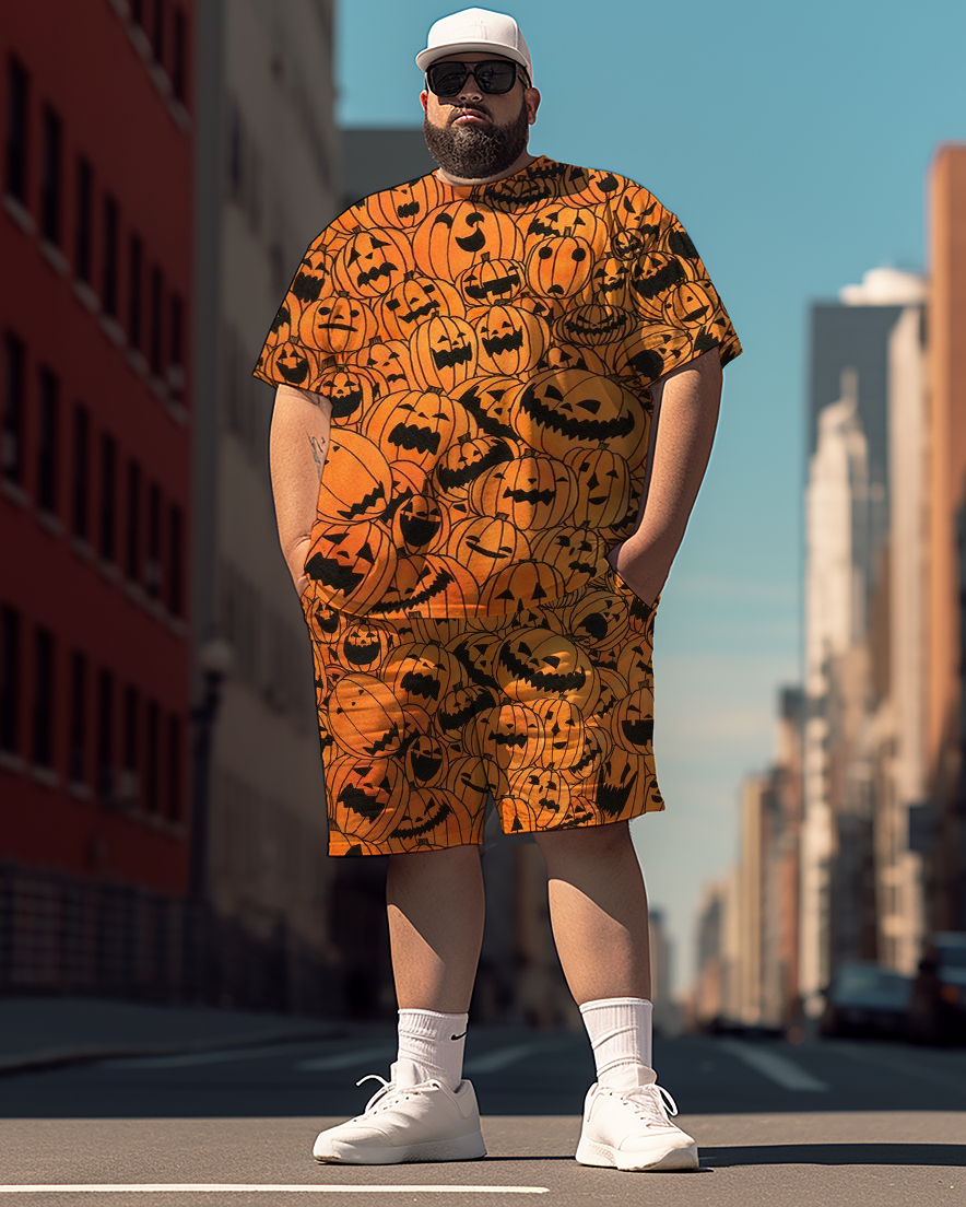 Ensemble de t-shirt grande taille pour homme avec motif citrouille mignon, costume décontracté pour homme