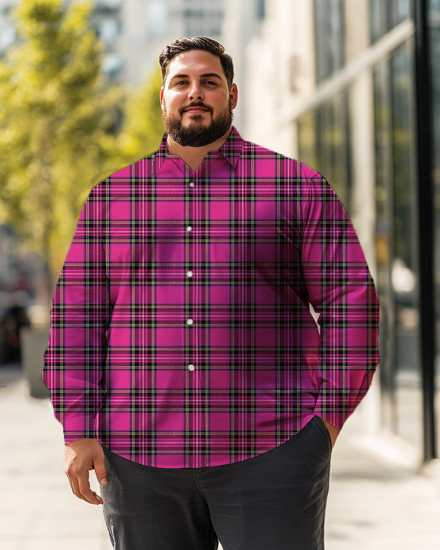 Chemise à manches longues à carreaux roses pour hommes, grande taille, chemise boutonnée