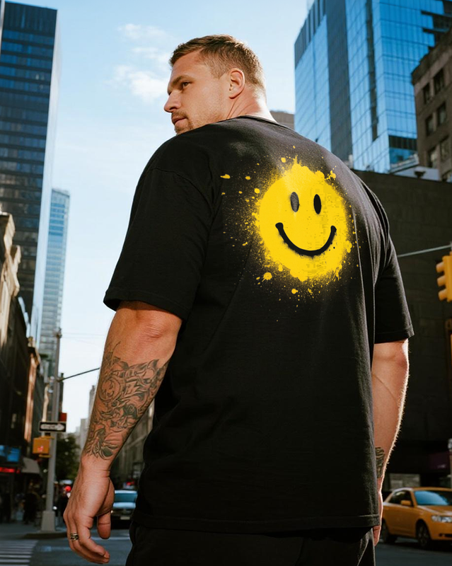 Men's Yellow Smiley Face Big & Tall 100% Cotton T-Shirt