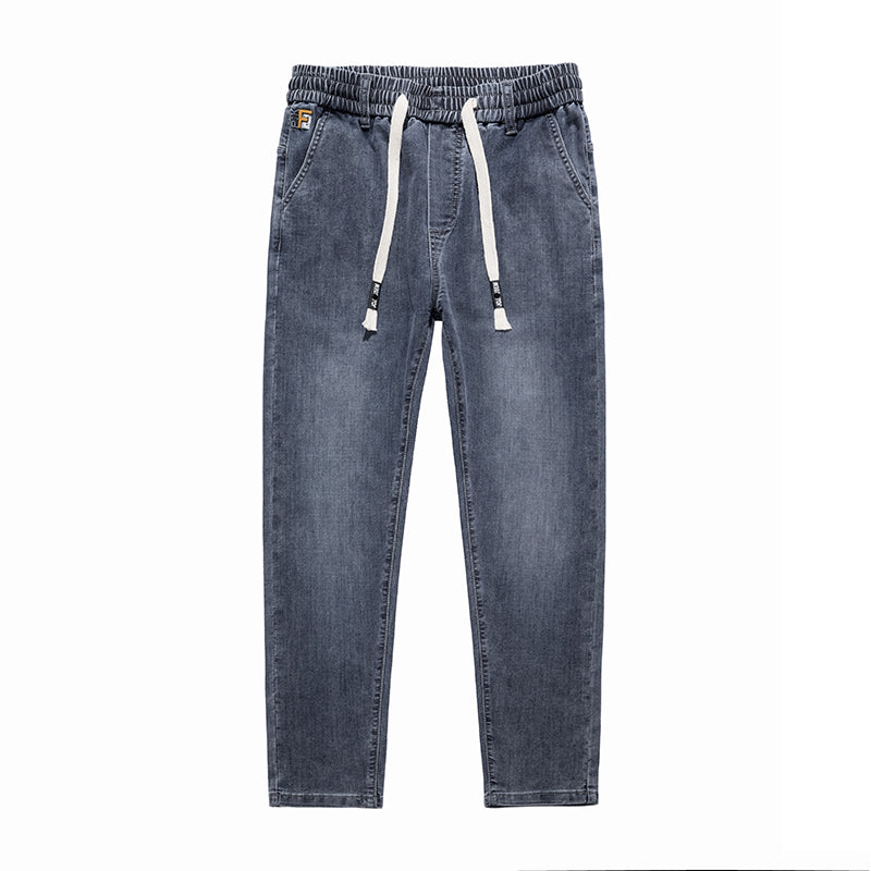 Plus Size Men's Drawstring Closure Waist Harlem Jeans,Spring Denim Pants