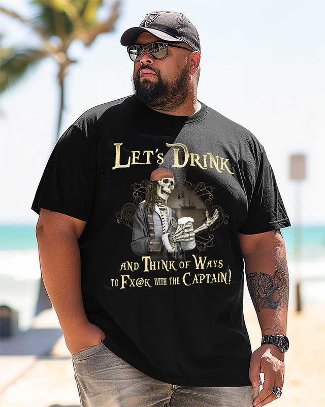 T-shirt à manches courtes imprimé grande taille pour homme « Screw With The Captain »