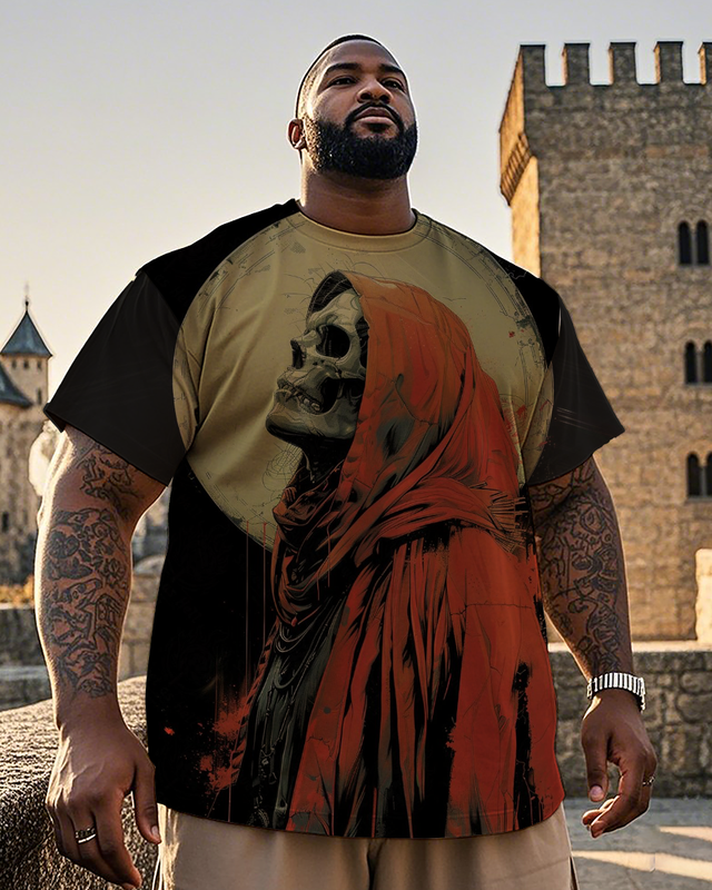 T-shirt à manches courtes pour homme avec tête de mort, grande taille