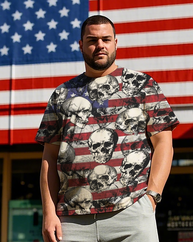 American Flag & Skull Men's Plus Size Short Sleeve T-Shirt