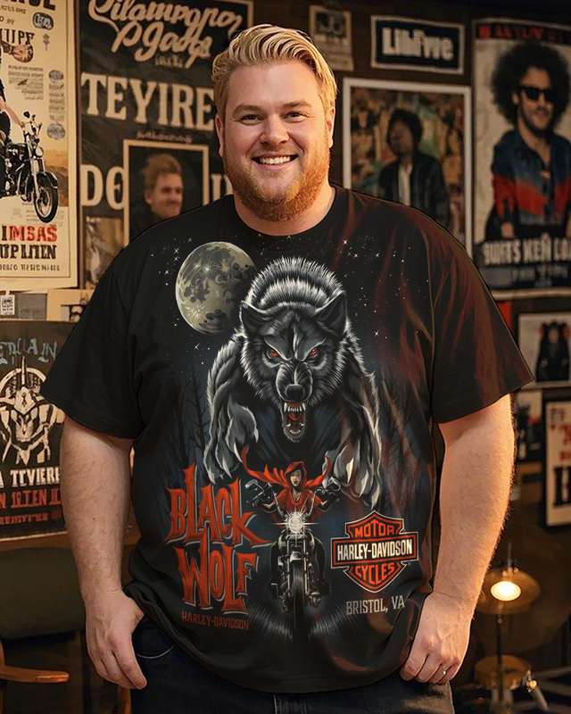 Black Wolf Men's Plus Size Printed Short Sleeve T-Shirt