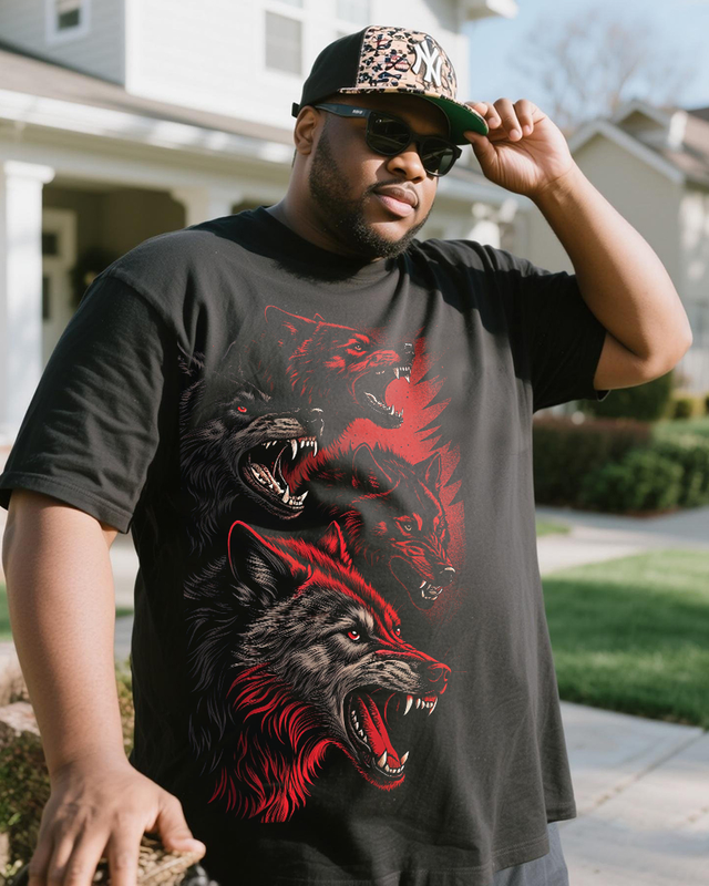 Black Wolf of The Red Moon Men's Big & Tall Short Sleeve T-Shirt