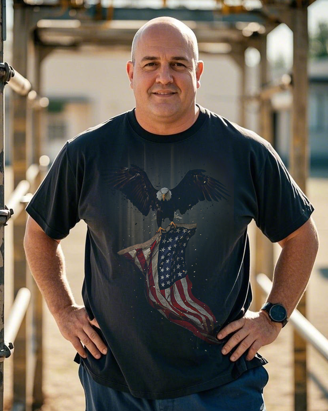 Eagles and Bones American flag Men's Plus Size Short Sleeve T-Shirt