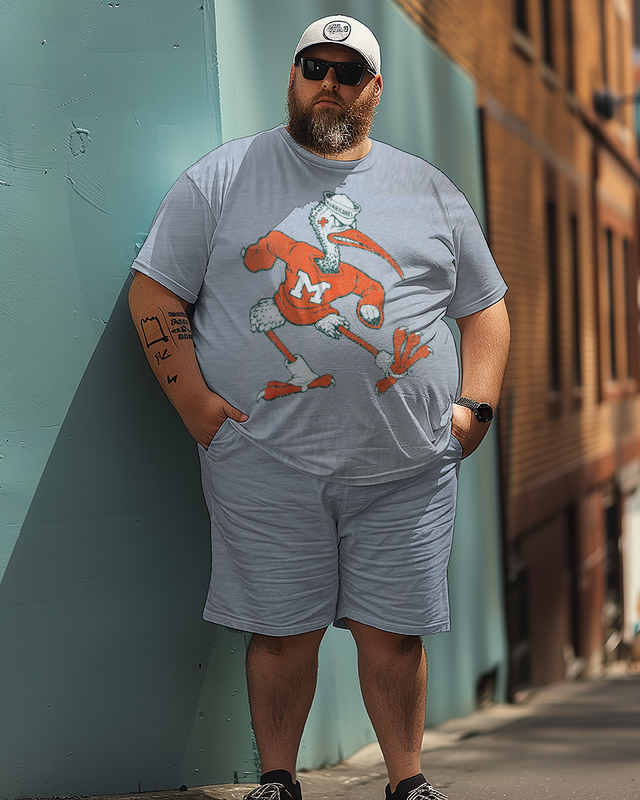 Men's Big Logo University of Miami Plus Size T-Shirt Set, Men's Sports Style Suit