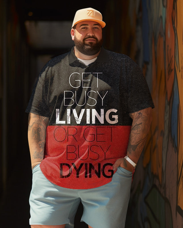 Men's Black and Red Colorblocked Letter Print Short Sleeve Polo Shirts, Summer Vacation Casual Shirts , Round Neck Shirt