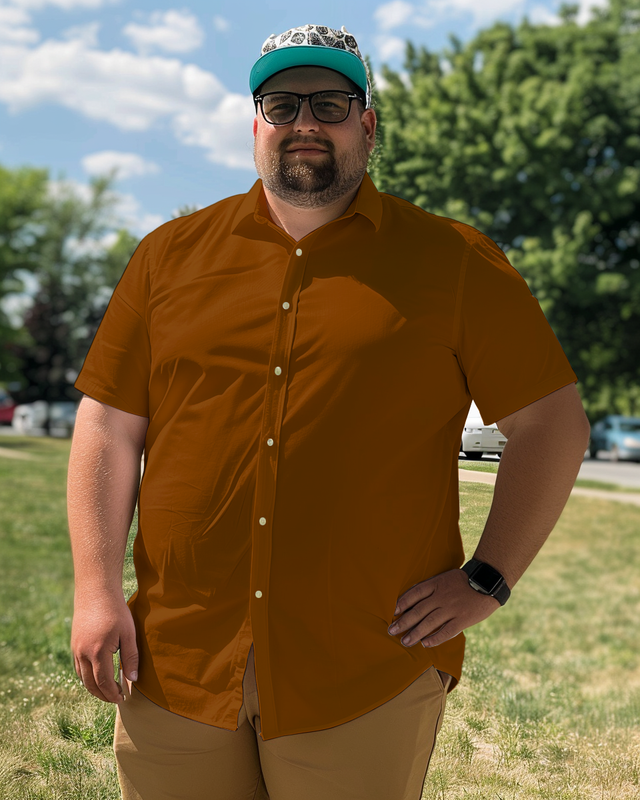 Men's Brown Plus Size Short Sleeve Shirt
