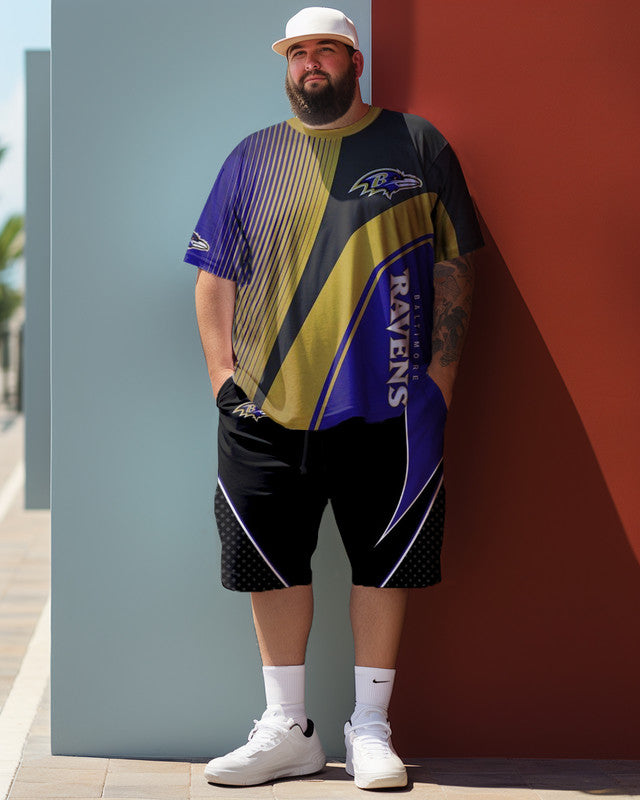 Men's Blue-Purple Black Colorblocked Team Style Plus Size T-Shirt Set