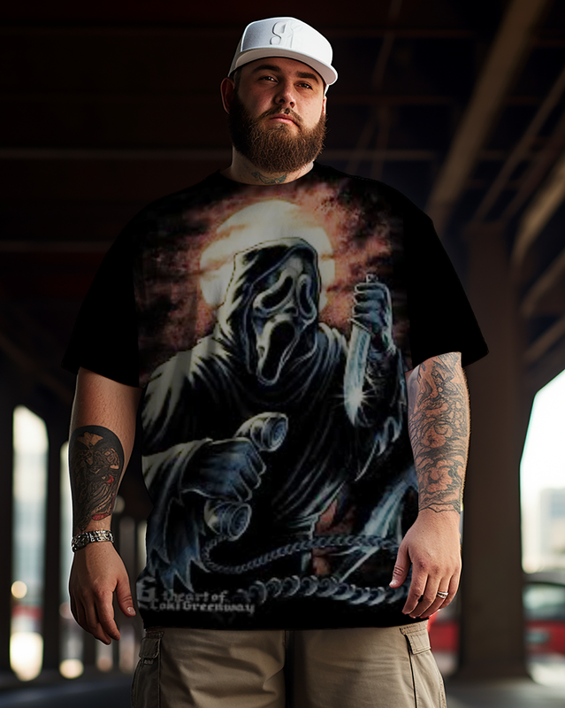 Men's  Halloween Ghostface With Knife Plus Size T-Shirt   Vintage Scream Shirt