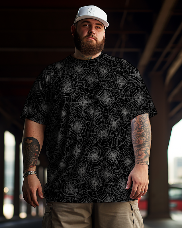 Men's Halloween Spider Web Plus Size T-Shirt & Short,
