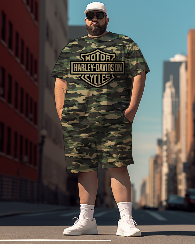 Men's Motor Cycles Plus Size T-Shirt Set, Men's Casual Suit