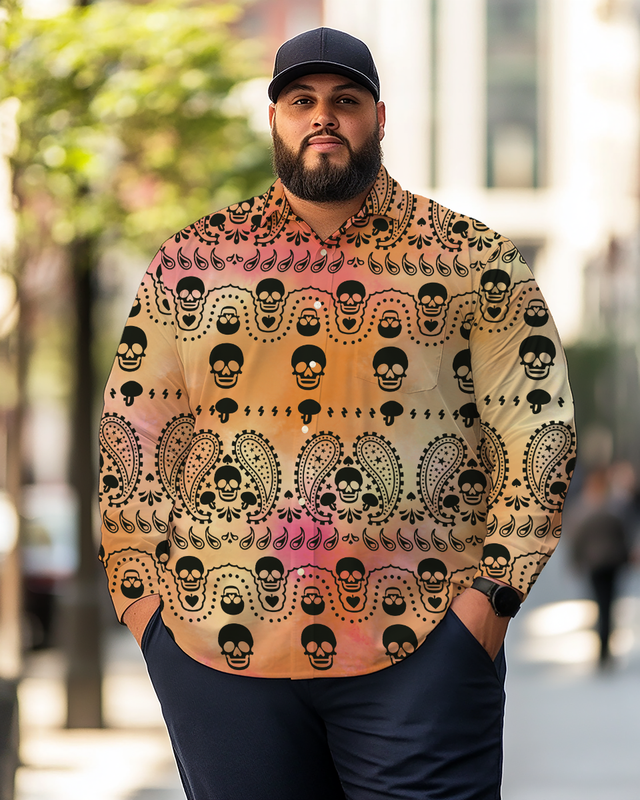 Men's PaisleySkulls Gradient Tie-Dye Plus Size Long Sleeve Shirt