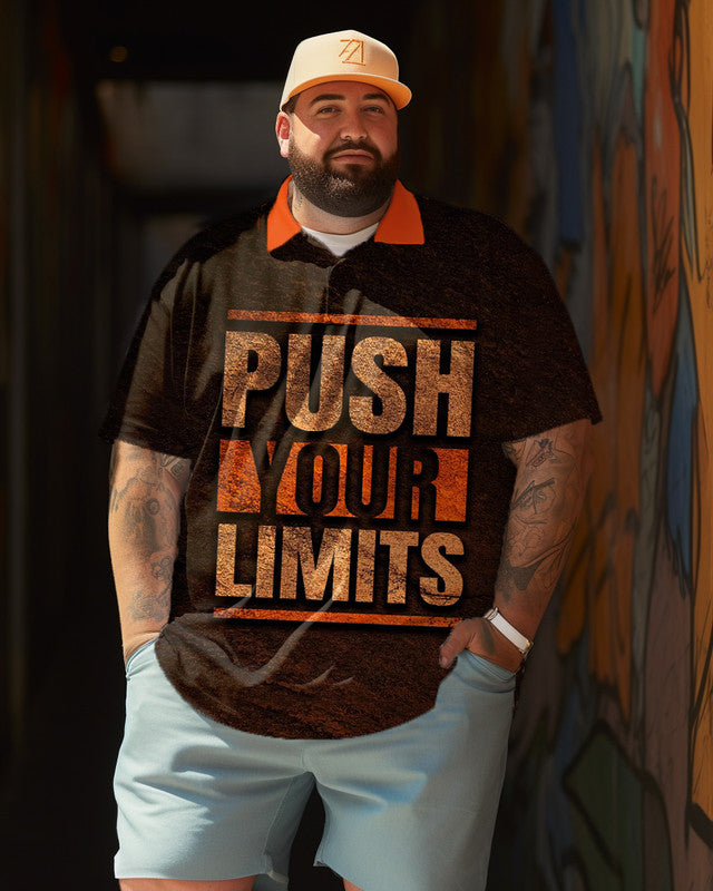Men's Push Your Limit Print Short Sleeve Polo Shirt, Summer Vacation Casual Shirts , Casual Breathable Tops,Gifts for Men