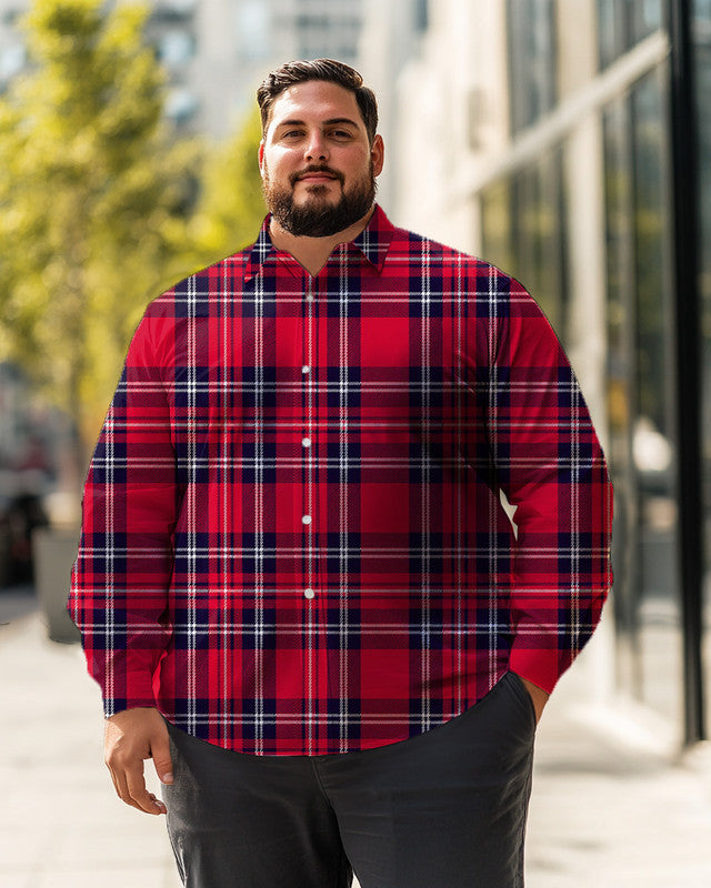 Men's Red Plaid Plus Size Long Sleeve Shirt  ,  Button Down Shirt