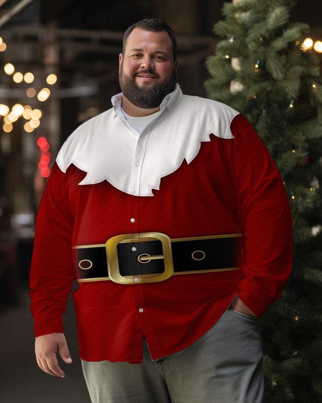 Men's Santa Claus Belt Pattern Plus Size Long Sleeve Shirt