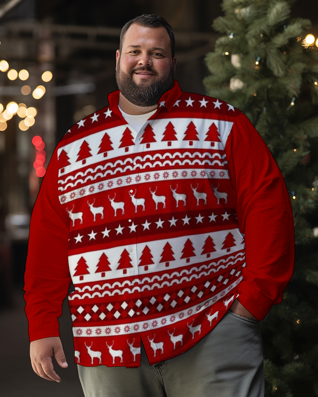 Men's Santa Reindeer Plus Size Long Sleeve Shirt