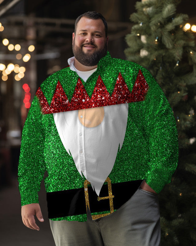 Men's Santa's Elf Plus Size Long Sleeve Shirt