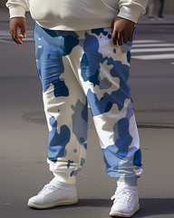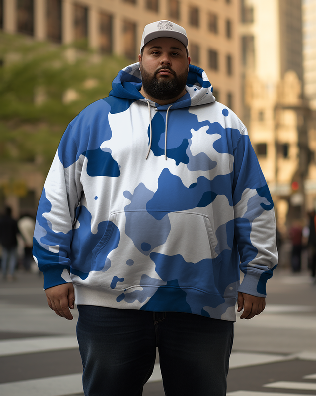 Men's Tricolor Camo Pattern Plus Size Hoodie&Pants