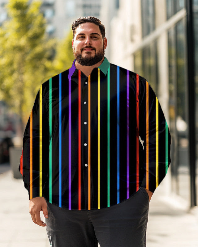 Men's vertical rainbow Plus Size Long Sleeve Shirt , Button Down Shirt
