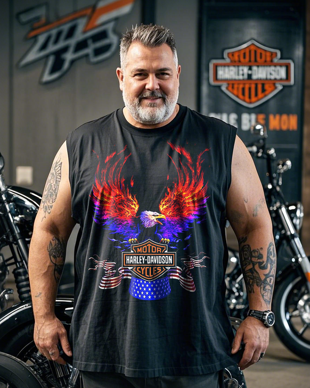 Vintage Harley Davidson Men's Plus Size Printed Sleeveless T-Shirt